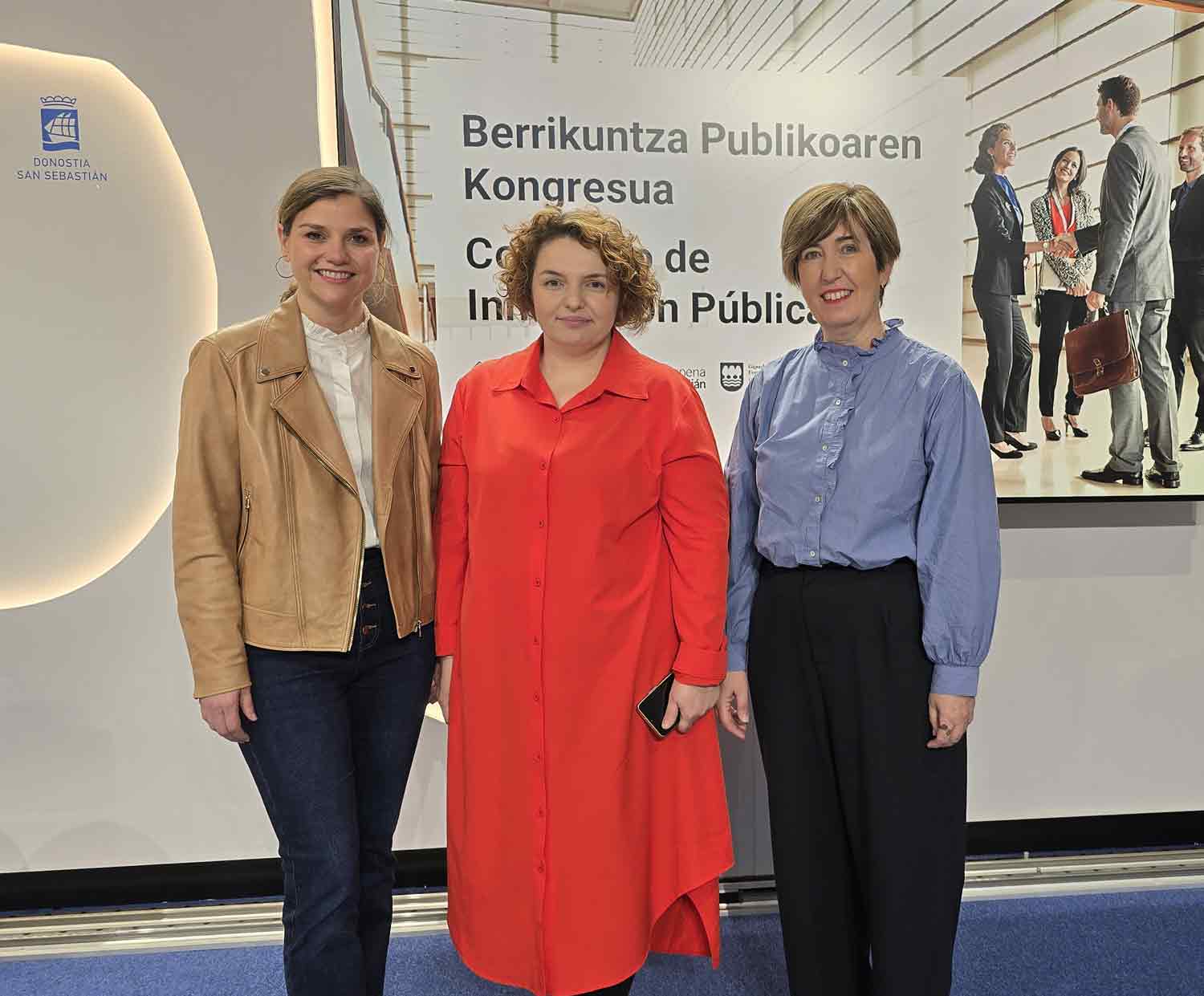 Ane Oyarbide, concejala de Economía y Empleo Local. Loredana Stan, directora de Novagob. Irune Beresaluze, diputada de Gobernanza.