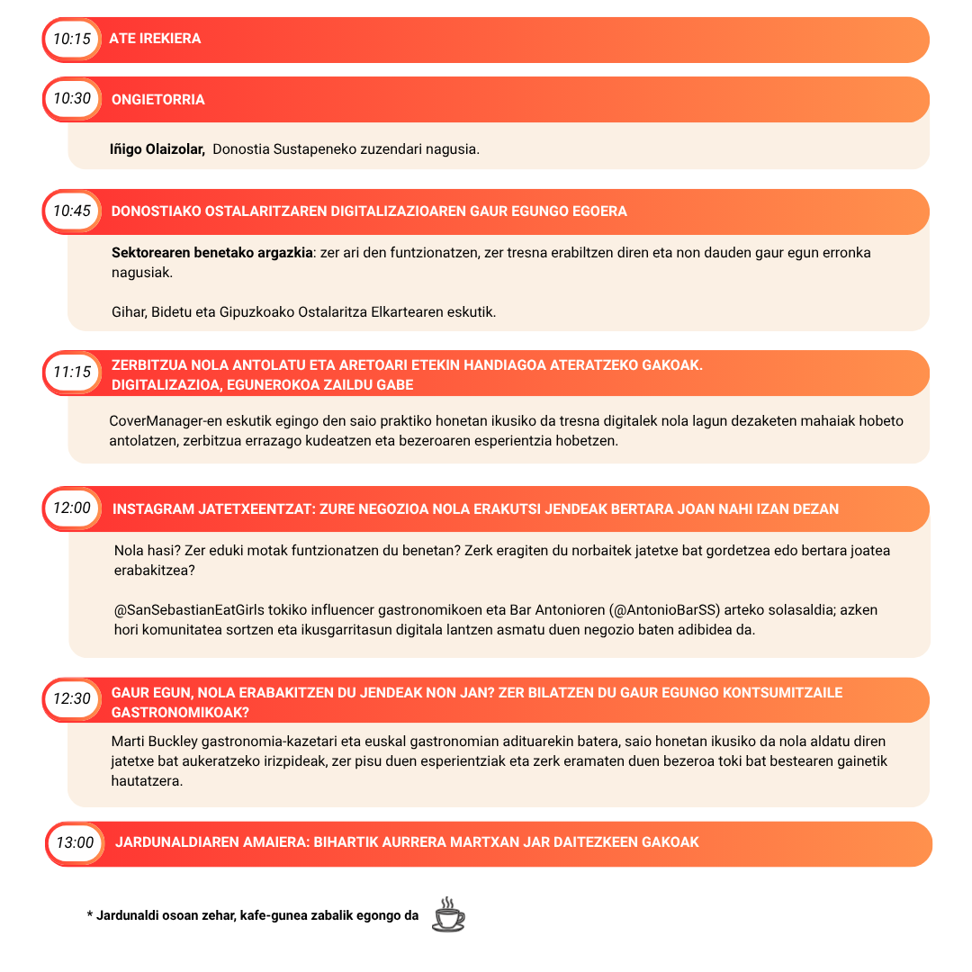 Saio honetan, hiriko ostalaritza-sektorearen bilakaera aztertu eta beste establezimendu batzuei zerbitzua hobeto antolatzen eta errentagarritasuna handitzen laguntzen dieten tresnak ezagutu ahal izango dituzu.